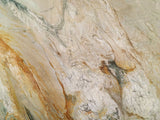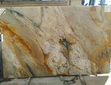 Ivory quartzite with gold yellow veining quarried in Brazil.